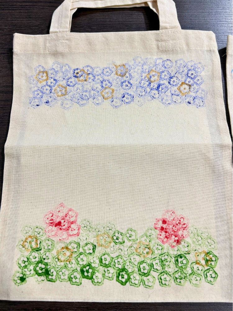 そして、私が担当したワークショップでは「野菜スタンプを使ったエコバッグづくり」を行いました。