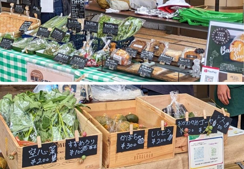 マルシェでは、マイファーム社員であり農家でもある杉原による「AINONE FARM(アイノネファーム)」の野菜と、アグリイノベーション大学校の卒業生である小熊さんによる「くま農園」の野菜・スイーツを販売。
